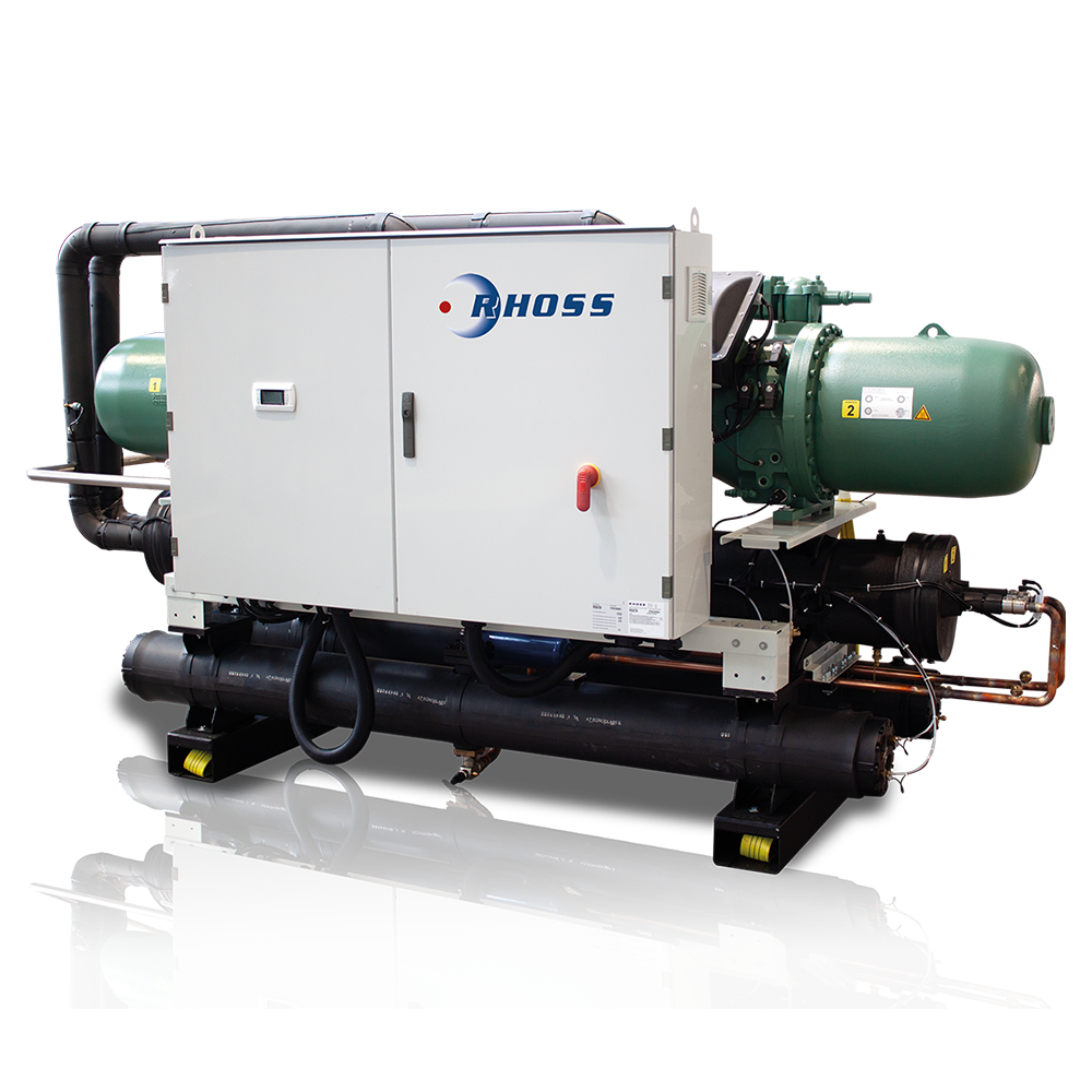 Vätskekylda vätskekylaggregat med miljövänliga köldmedier (R515B eller R1234ze) i storlekar från 450 till 900 kW. Semihermetiska skruvkompressorer (steglös kapacitetsreglering 25-100 %).